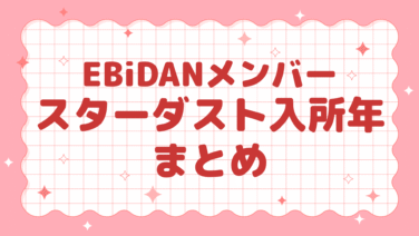 EBiDANメンバーのスターダスト入所年をまとめました。参考文献は下に付けていますが、違う等あればお気軽に連絡ください!...
